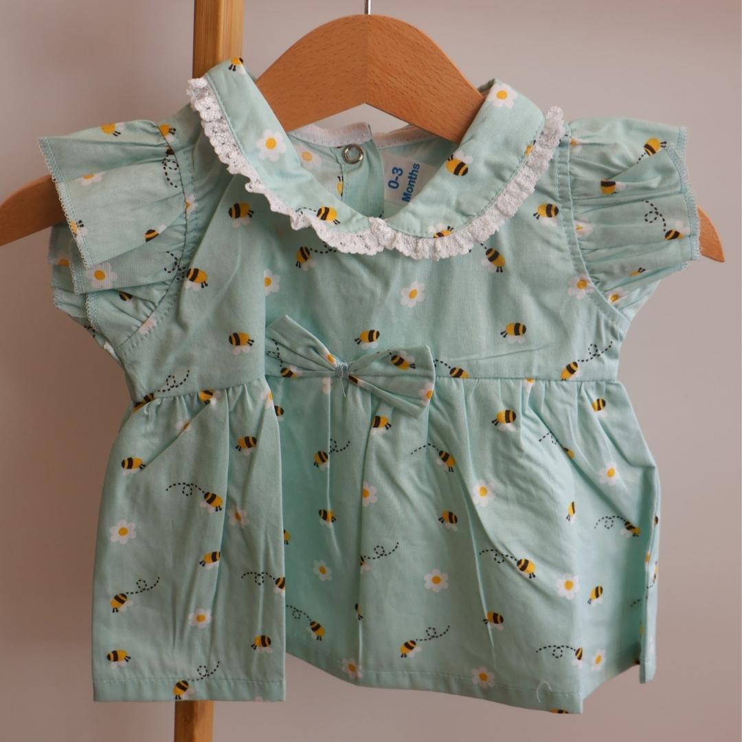 100% Cotton Baby Frock | Little Bee Adventure | Sage Green