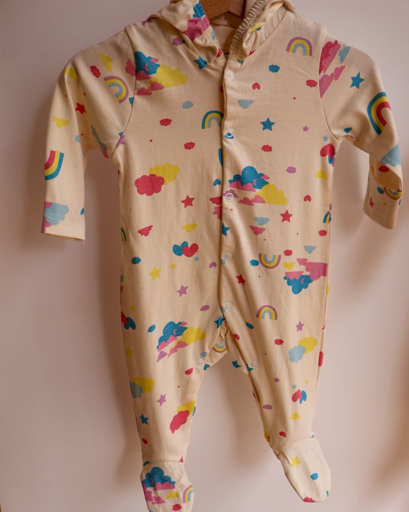 100% Cotton Baby Hooded Sleepsuit | Rainbow | Pack of 2