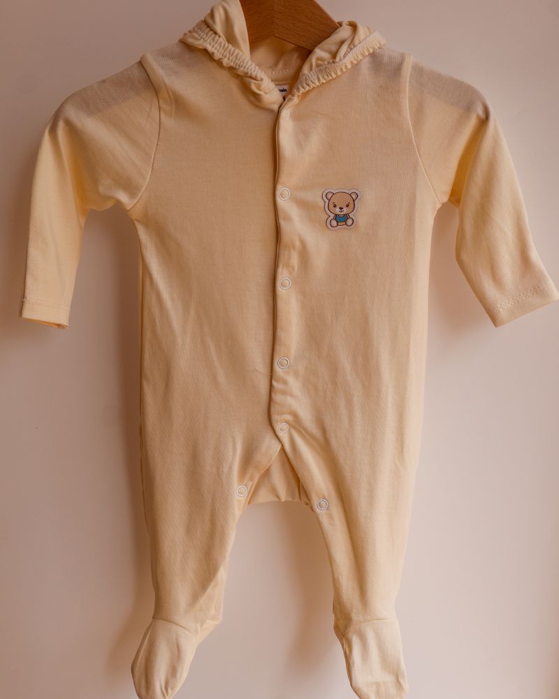 Designed for your baby’s comfort all day and night, this sleep suit is perfect for play, rest, and sleep. With its soft, breathable fabric and built-in mittens, it prevents accidental scratches while keeping your little one cozy. The relaxed fit ensures freedom of movement, making it ideal for naps, cuddles, and everything in between.