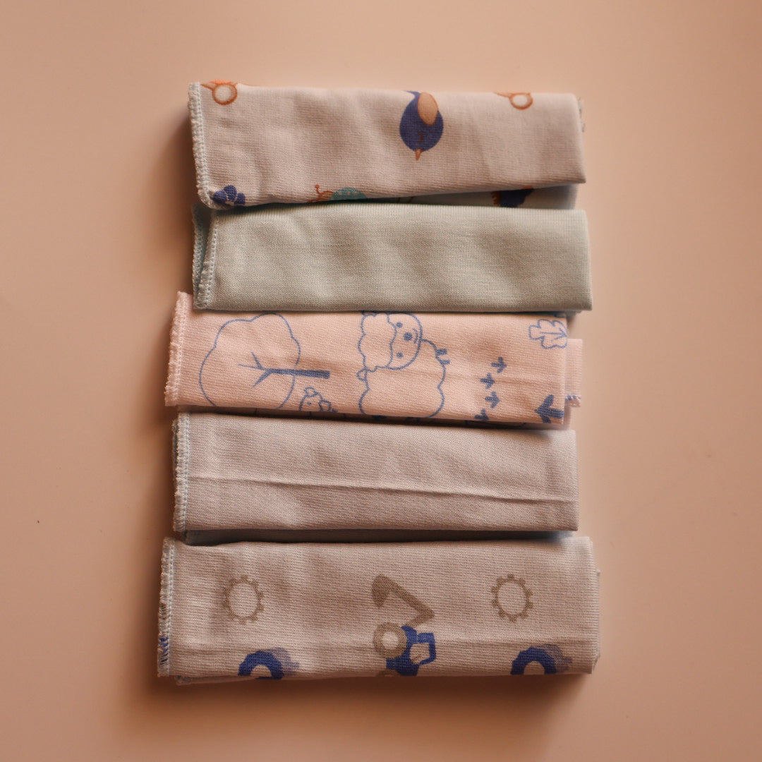 - Comes in a pack of 5 with soothing, baby-friendly colours and designs.