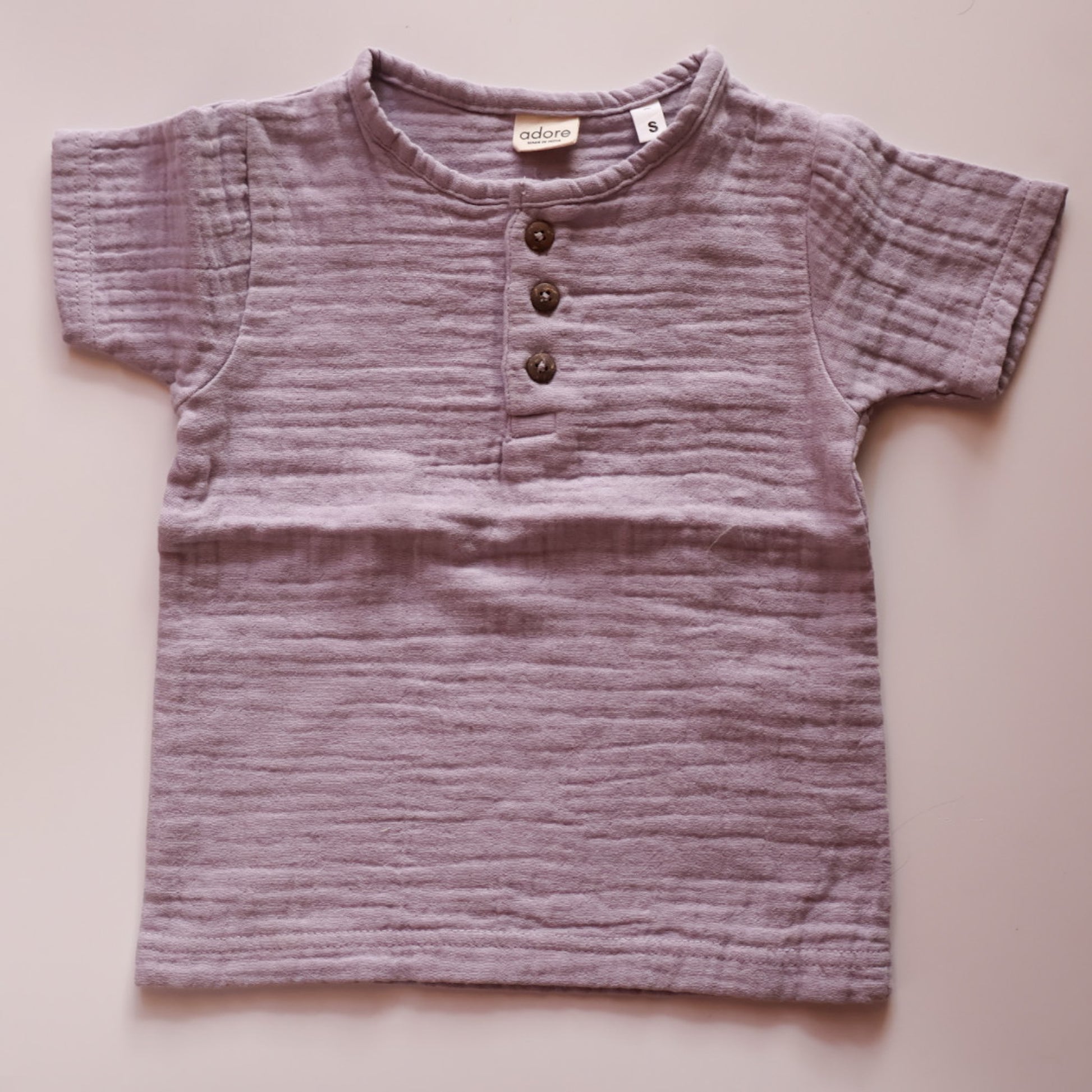 Made from lightweight, 100% muslin cotton, this t-shirt is perfect for active kids who need the freedom to move while staying cozy all day.