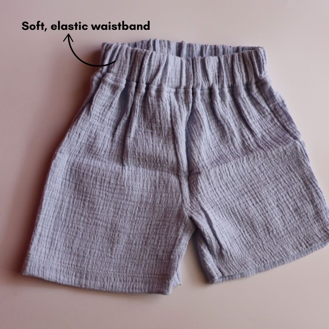 - Soft, elastic waistband on shorts for comfort