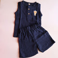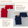 100% Organic Muslin T-Shirt & Shorts | Maroon & Navy Blue Combo