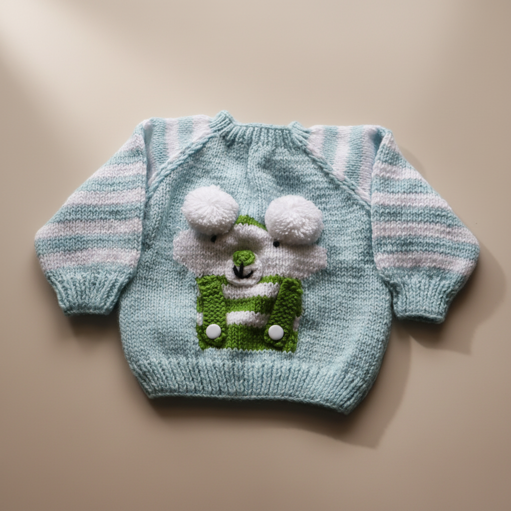 Wrap your little one in cozy warmth with our handmade baby sweaters, crafted from premium Ganga Acrylic yarn — Oeko-Tex certified for safety and softness. Designed to be gentle on delicate skin, these sweaters feature playful motifs and timeless patterns, perfect for everyday wear or gifting. Lightweight yet snug, they keep babies warm through every cuddle, giggle, and nap.