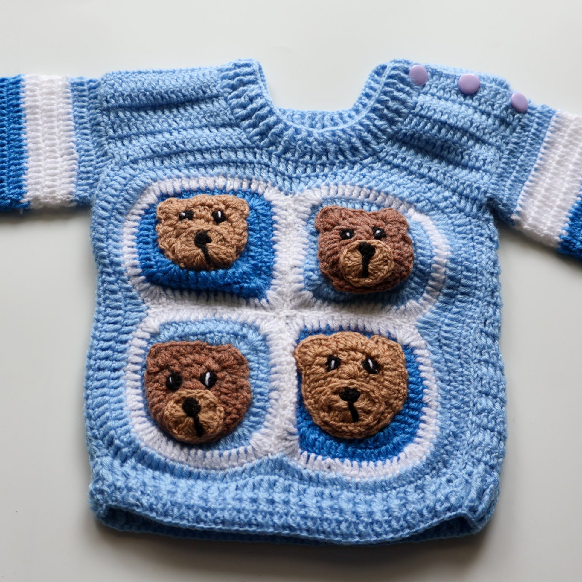 Tiny Teddy Patch Pullover | Handmade Sweater