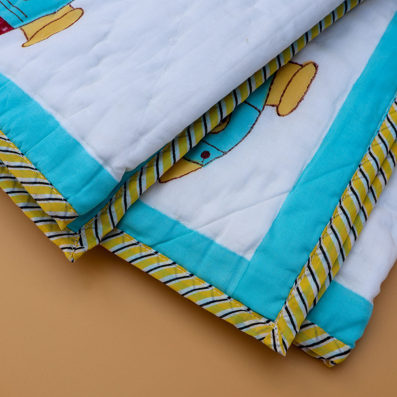 Each quilt is a canvas of comfort, featuring adorable patterns. The soft, breathable cotton fabric is gentle on your baby's skin, ensuring a peaceful slumber amidst the vibrant hues of hand-pressed designs.
