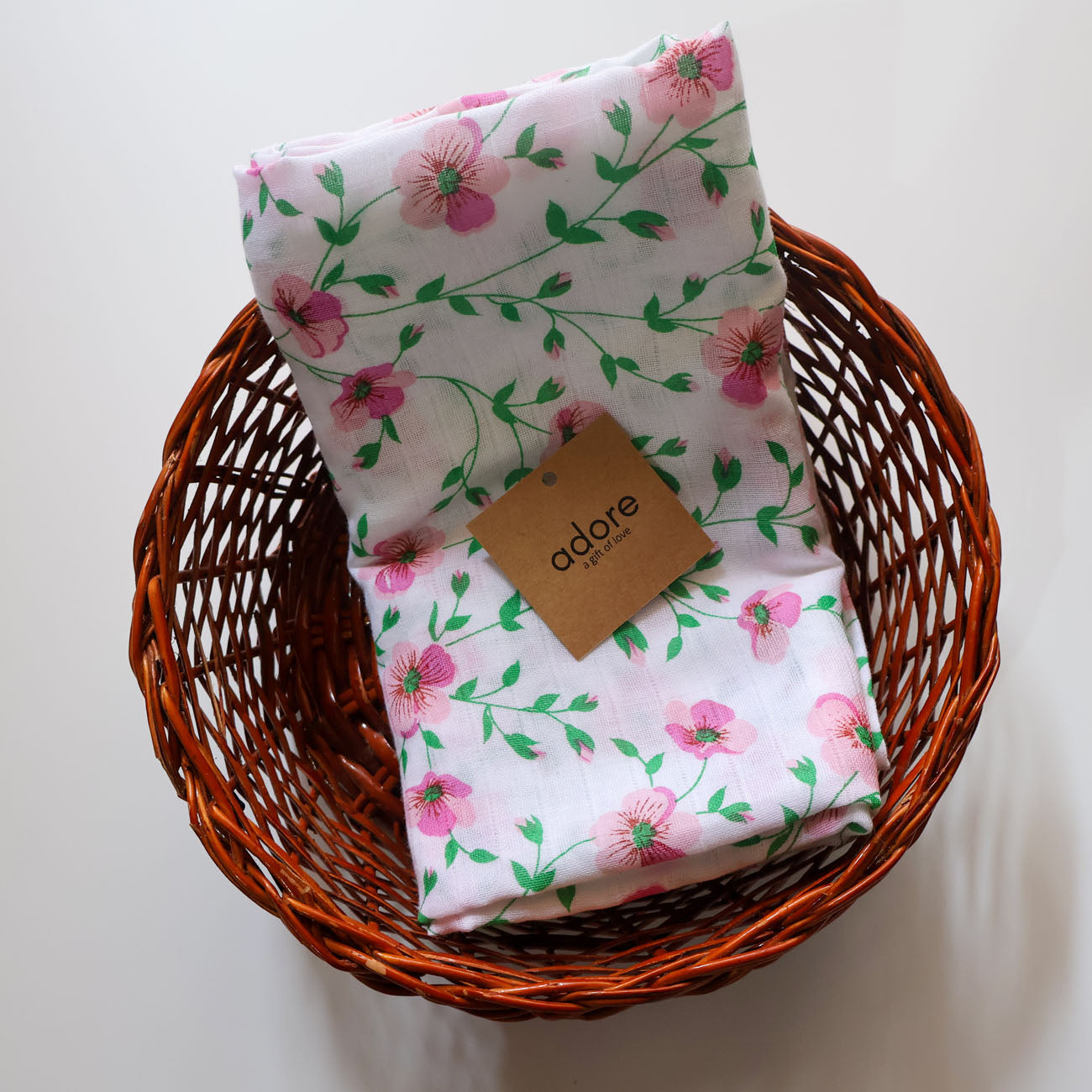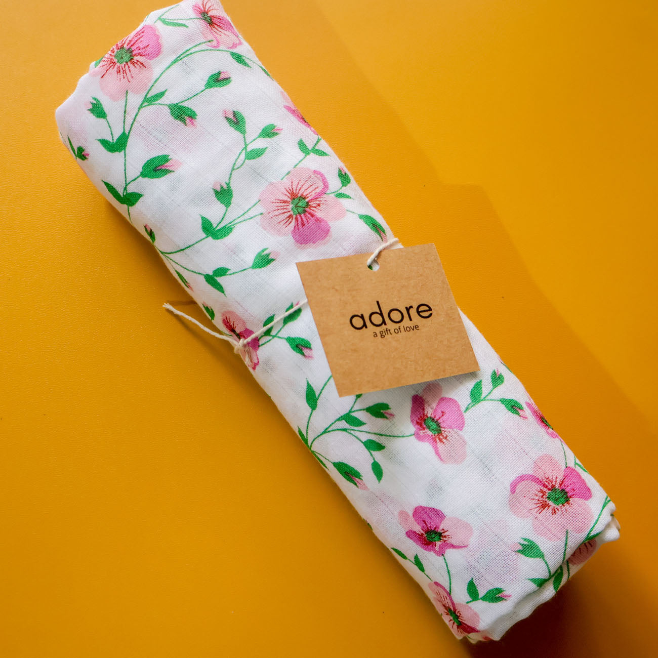 Organic Muslin Cotton Swaddles - Soft & Breathable - Floral Dream & Little Hearts