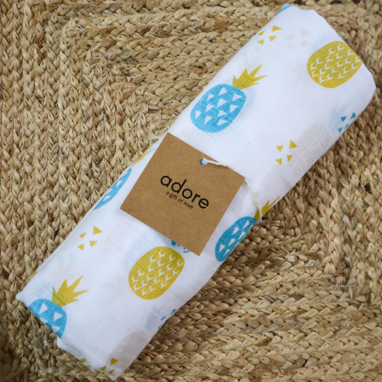 Organic Muslin Cotton Swaddles - Soft & Breathable - Pineapple Paradise