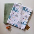 Organic Muslin Cotton Swaddles - Soft & Breathable - Sage Cuddle & Twinkle Trunk
